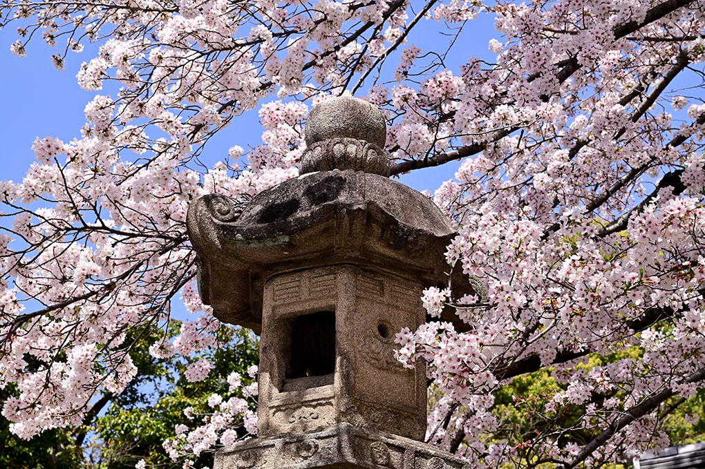どこか桜と一緒に撮れないかなと探していると、南大門跡南側の「般若の芝」と名付けられているエリアにきれいに咲いている桜があった。