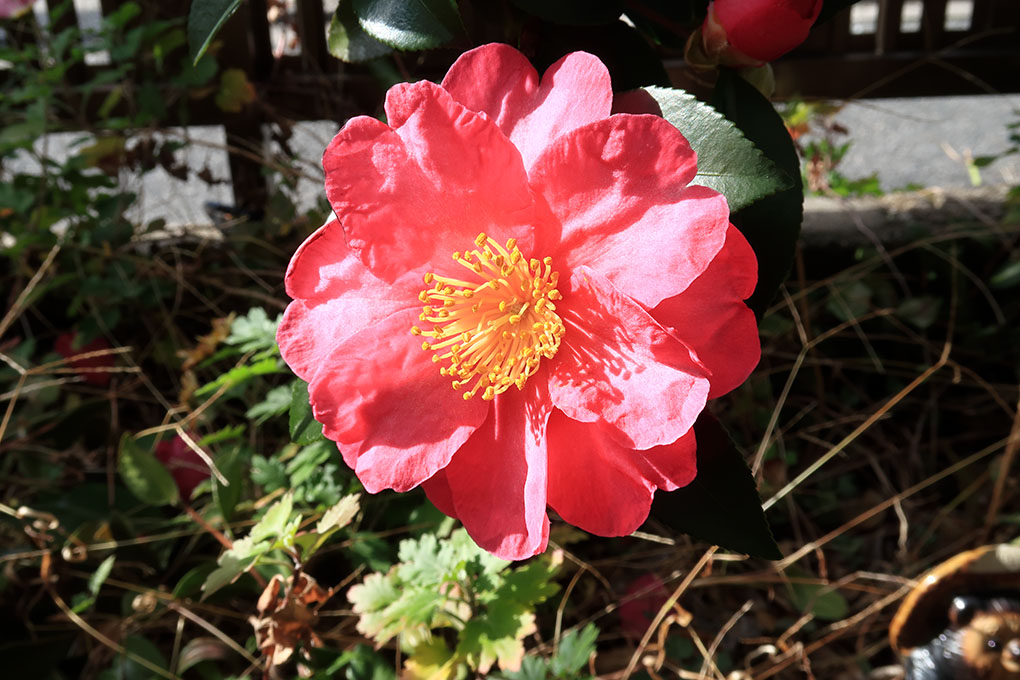 いつもはあまり花が目立たない冬の庭だけど、今シーズンは暖冬の影響なのか、当たり年なのか、たくさんのサザンカが咲いている。