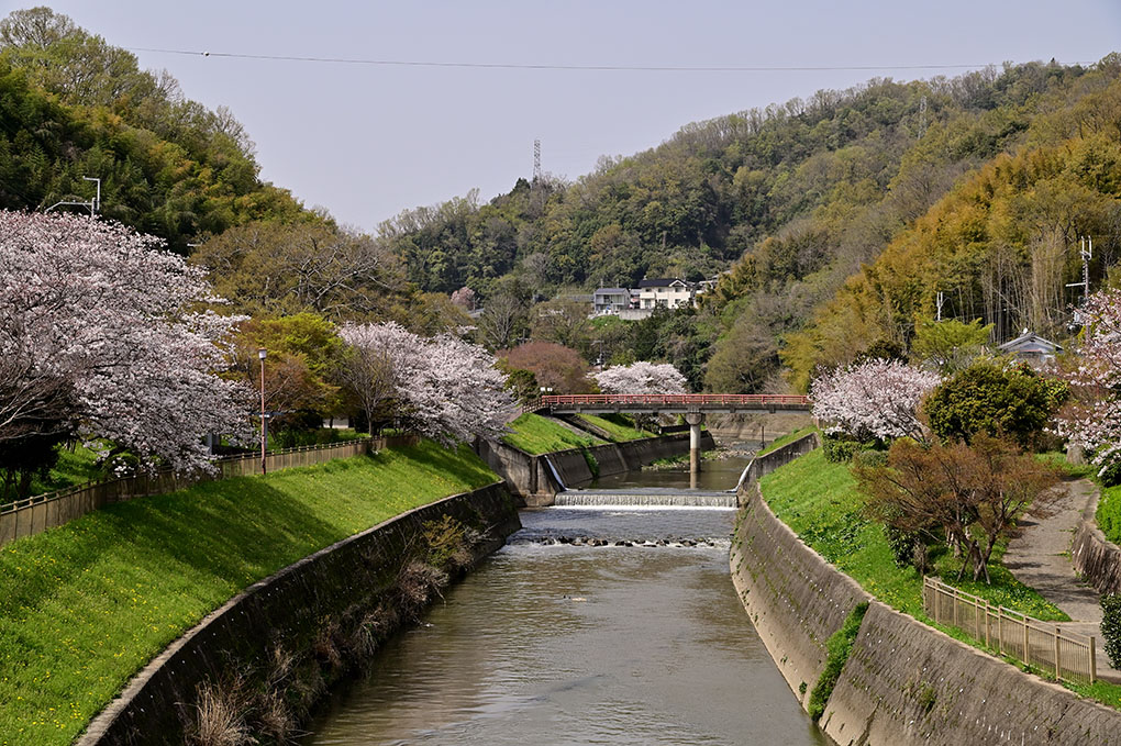竜田川沿いの桜の名所、三室山周辺は桜の花がたくさん咲いている。