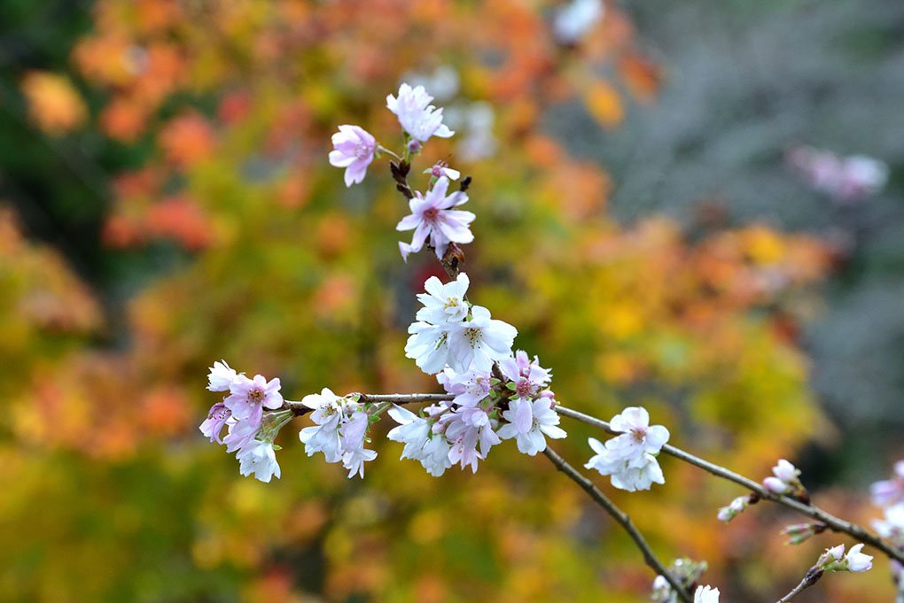 毎年きれいな紅葉が楽しめる當麻寺奥院。でも今年の楓の色づきは西南院と同じであまりきれいではない。 赤い葉は散り始めているけど黄色や緑の葉が残っている。色づきが一斉じゃないみたい。 この季節のもう一つのお楽しみ、十月桜は時期が良かったようで今が満開。 花が少なくなっていく季節に貴重な存在。 紅葉は来年に期待かな。 そして帰りに中将餅の食べ納め。中将堂本舗に立ち寄る。来年は何回食べるんだろ。